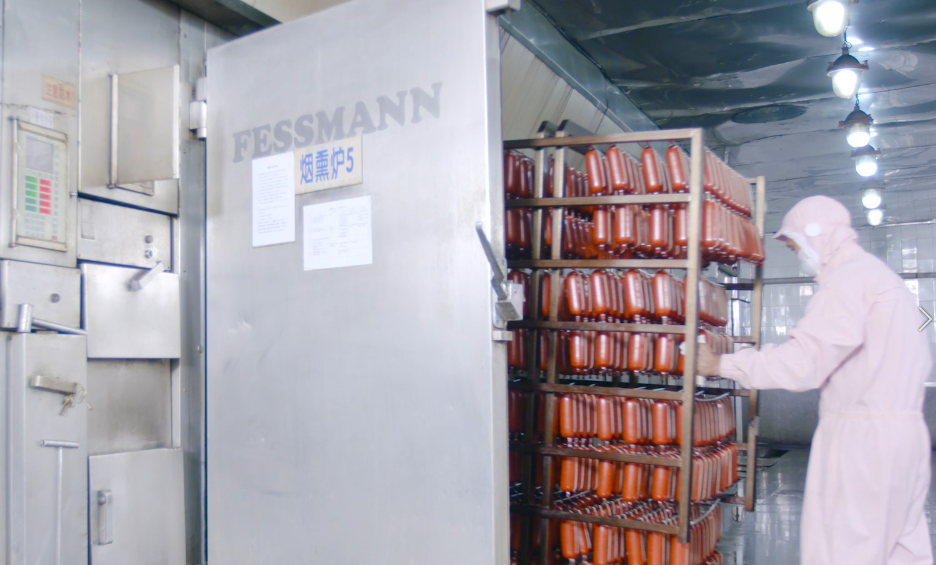 龍大肉食目前擁有5家肉制品加工廠,配備的生產車間引進了一系列國際水平一流、生產效能高的流水線生產設備,其中包含灌裝精準、顆粒分明的德國韓德曼灌裝機,能保持原料原味和新鮮度的意大利LASKA絞肉機和斬拌機,以及德國CFS的真空包裝機,威馬格等地的煙熏爐等,形成了從原料解凍、肉質嫩化、真空提取肉蛋白到恒溫恒熱熱加工等關鍵環節,全封閉無菌式、低溫高效的安全生產技術,并通過“分析-控制-監測-校正”的方法,最大化保證食品品質并預防食品事故的發生。